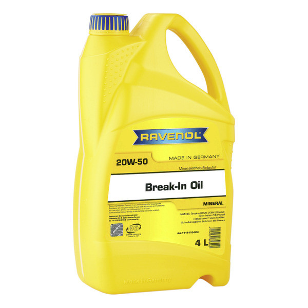 RAVENOL Break-In Oil SAE 20W-50 mineral moyi – yangi, sportcha tyuning qilingan, kapital ta’mirdan chiqqan dvigatellarni ishlatishga tushirish uchun mo‘ljallangan. Yuqori bosimga chidamliligini ta’minlovchi qo‘shimchalar kompleksi mavjud.