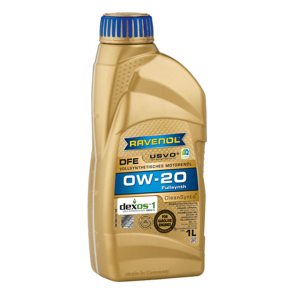 RAVENOL DFE 0W-20 – to‘liq sintetik, oson oqadigan motor moyi bo‘lib, PAO (poli alfa olefin) asosida CleanSynto® texnologiyasidan foydalangan holda ishlab chiqarilgan. Turbokompressorga ega yoki ega bo‘lmagan benzin dvigatellari, masalan, GDI (to‘g‘ridan-to‘g‘ri yoqilg‘i purkash tizimiga ega) dvigatellar uchun mo‘ljallangan.