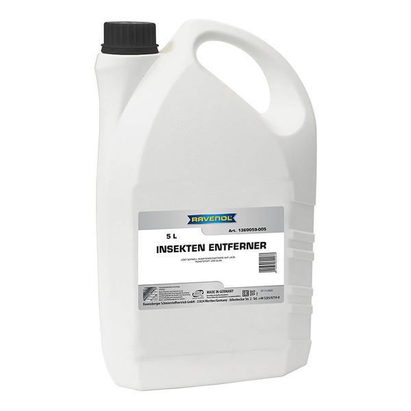 RAVENOL Insekten-Entferner — avtomobil yuzalarini hasharot izlaridan tozalash uchun mo‘ljallangan vosita. Qurib qolgan hasharotlarni oynalar, kuzov, plastmassa, shuningdek bo‘yalgan va xromlangan yuzalardan samarali tarzda yo‘qotadi.