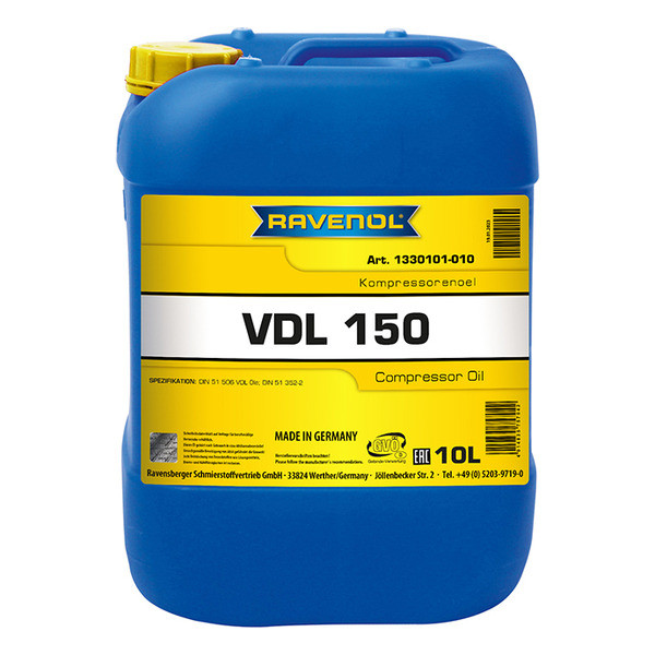 Ushbu mahsulot DIN 51506 VD-L standartiga muvofiq kompressorlar uchun maxsus ishlab chiqilgan bo‘lib, qo‘shimcha tirnalishga qarshi xususiyatlarga ega. Shuningdek, RAVENOL Kompressorenoel VDL 150 DIN 51506 VCL va VBL standartlari talablariga ham javob beradi.