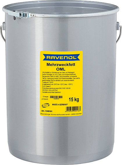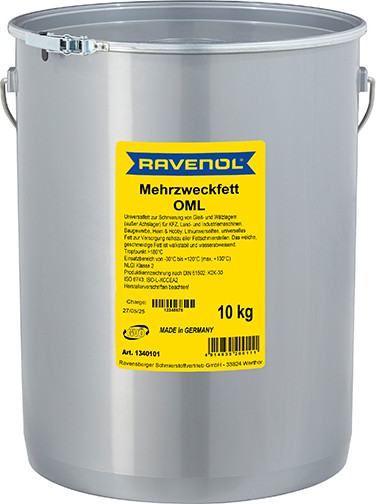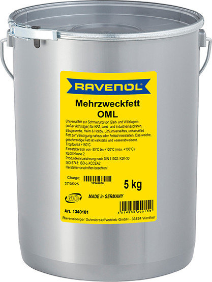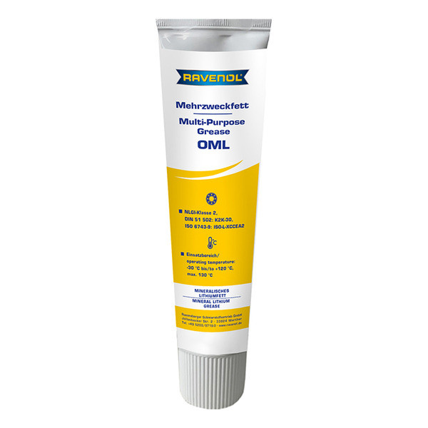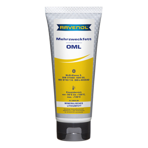 RAVENOL Mehrzweckfett OML — bu oksidlanish va korroziyadan himoya qiluvchi xususiyatlarga ega, mineral asosli, suvga chidamli universal surkovchi litiyli qalin moydir.