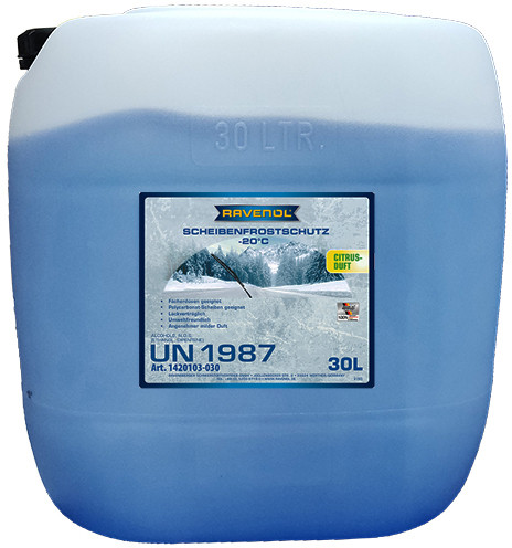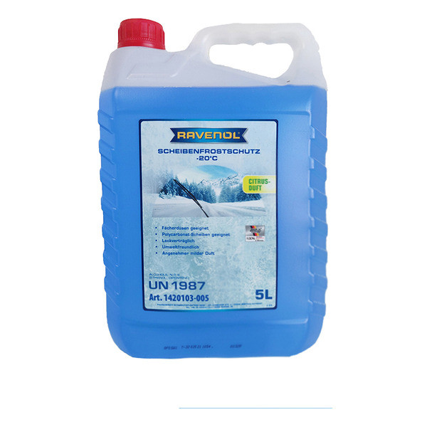 RAVENOL Scheibenfrostschutz -20°C is a ready to use winter screenwash antifreeze with freeze protection to -20°C with a special pleasant citrus perfume, based on alcohols.