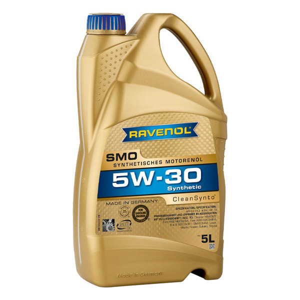 RAVENOL SMO SAE 5W-30 Synthetic Multi Oil sintetik motor moyi bo‘lib, CleanSynto® texnologiyasi asosida ishlab chiqarilgan. Ushbu moy turbinali va turbinasiz, shuningdek, to‘g‘ridan-to‘g‘ri yoqilg‘i purkash tizimiga ega benzinli dvigatellar uchun mo‘ljallangan. Ishqalanishni va eskirishni kamaytiradi, yonilg‘i sarfini pasaytiradi, sovuq ishga tushirishda a'lo xususiyatlarni ta’minlaydi. Avtomobil ishlab chiqaruvchilari talablariga muvofiq uzaytirilgan almashtirish intervallariga ega.