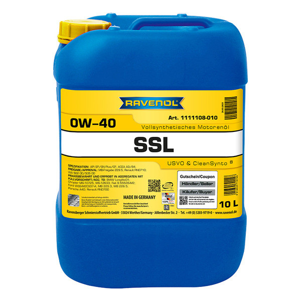 To‘liq sintetik PAO asosidagi RAVENOL SSL 0W-40 yengil avtomobillar uchun mo‘ljallangan: Audi, BMW, Chrysler, Fiat, Mercedes-Benz, Porsche, Renault, Skoda, VW va SAE 0W-40 yopishqoqlik darajasi hamda ACEA A3/B4 sifat talablariga javob beradigan, yuqori ishqor soniga ega moylar talab qilinadigan avtomobillar uchun tavsiya etiladi. Ekstremal past harorat sharoitida foydalanish uchun mos keladi.