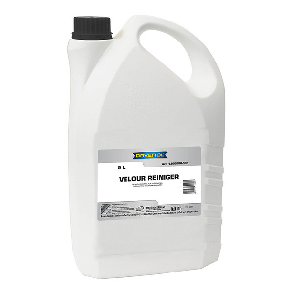 RAVENOL Velour-Reiniger — fosfatsiz tarkibga ega bo‘lgan vosita bo‘lib, u avtomobildagi velyur qoplamali o‘rindiqlar, qoplamalar va plastmassa yuzalarni tozalash uchun mo‘ljallangan. O‘rindiqlar va panel yuzalarini oson va samarali tozalaydi. Yog‘li dog‘lar, sigaret va ovqat izlarini yo‘qotadi, yoqimsiz hidlarni bartaraf etadi. Yuzaga zarar yetkazmaydi.